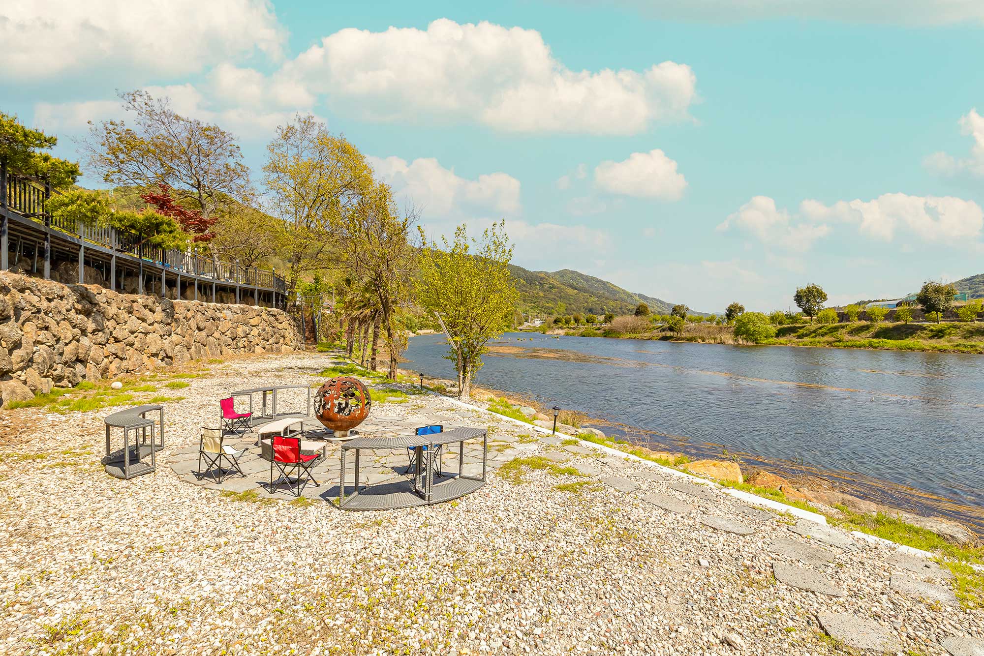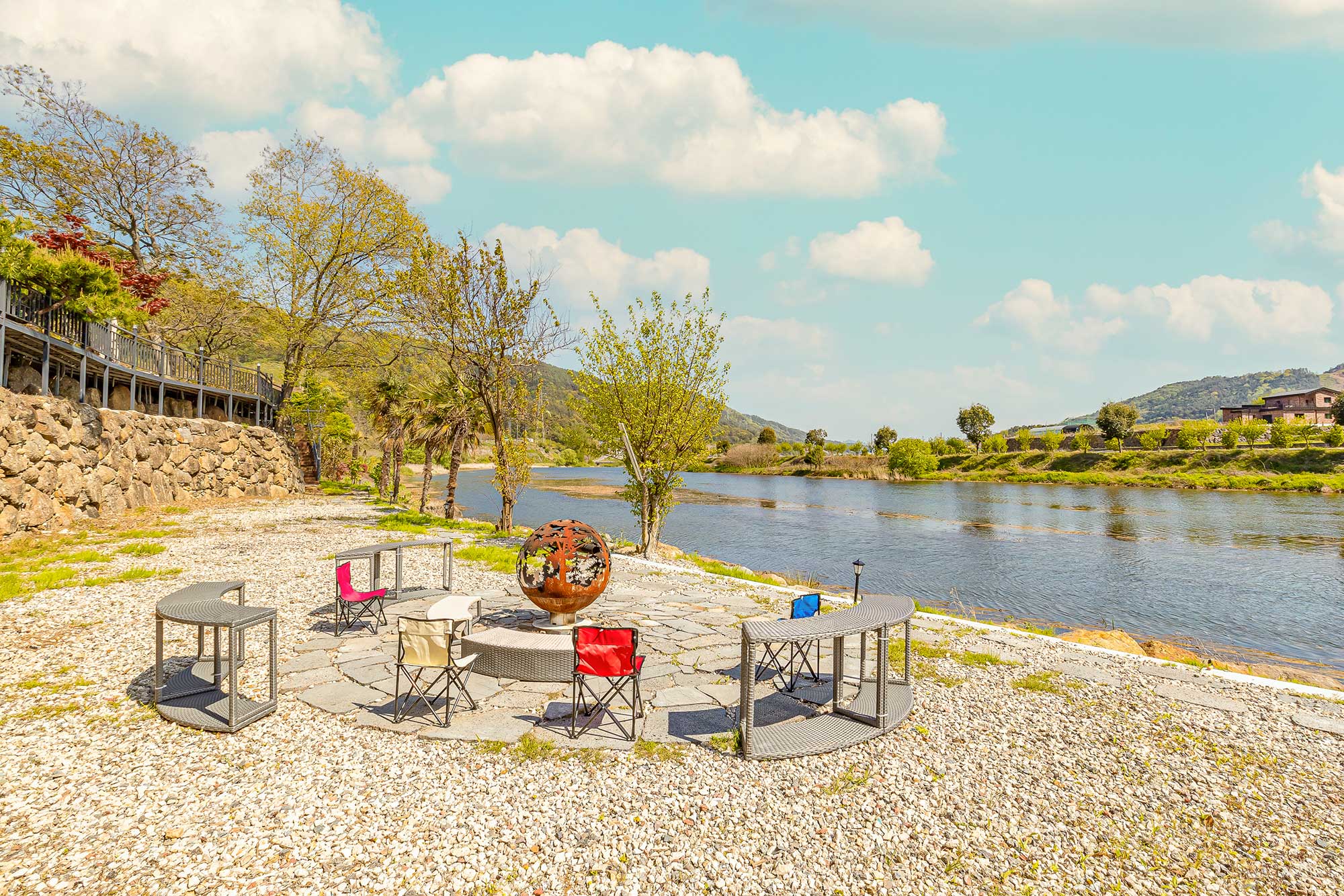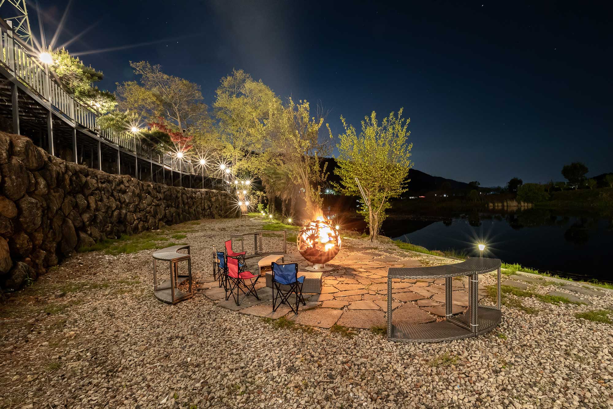 물안개 피어오르는 강가 옆 길게 늘어진 산책로인 안개가람길과밤하늘의 별이 잘보이는 별바라기터 공간에서 휴식 할 수 있습니다.